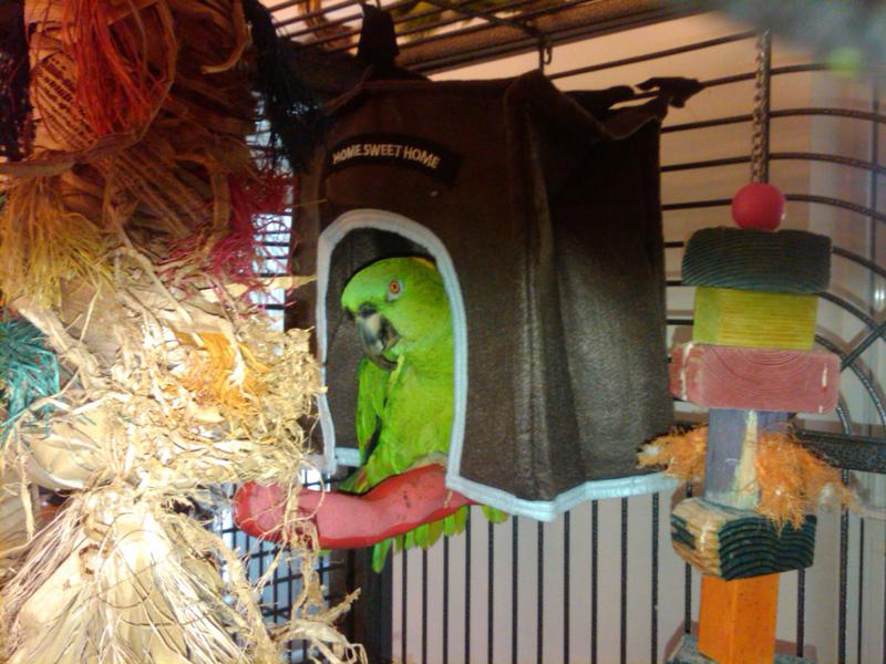 Grizzle lives indoors in a safe, comfortable environment designed for his needs. His diet is adapted for his beak deformity - softened foods and specialized feeding techniques ensure he receives proper nutrition.