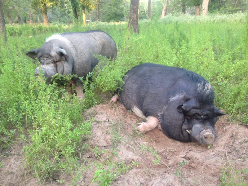 Our pigs live on pasture, root in the dirt, wallow in mud, and enjoy all the natural behaviors pigs should. They receive veterinary care, high-quality feed, and the freedom to just be pigs.